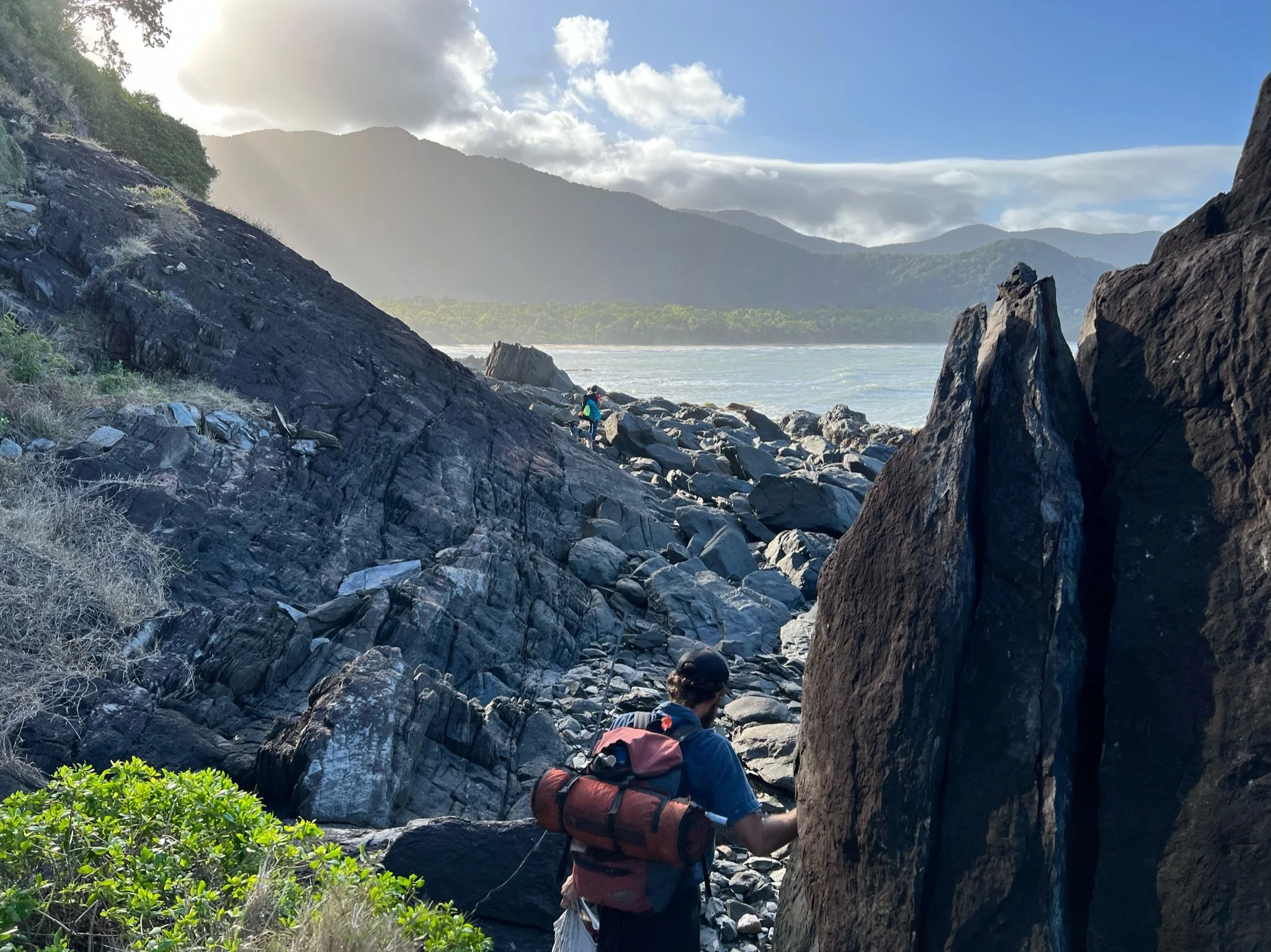 The jungle didn’t welcome us — we carved our way in. Six hours felt like days. Every step fought back: vines pulling at our packs, roots slick with rot, leeches finding their way through our socks. My camera bag dug into my shoulders until the straps began to tear, so I carried it by the top handle to relieve the pressure, switching arms every few minutes. The air was thick enough to drink, and the light barely made it through the canopy. Our shirts stayed wet, not from rain, from the weight of the day itself. Time stopped meaning anything. Every turn looked the same — the same repeating pattern of green and rock — until the forest finally spat us out onto a stretch of coast so long and empty it felt like the edge of the world.